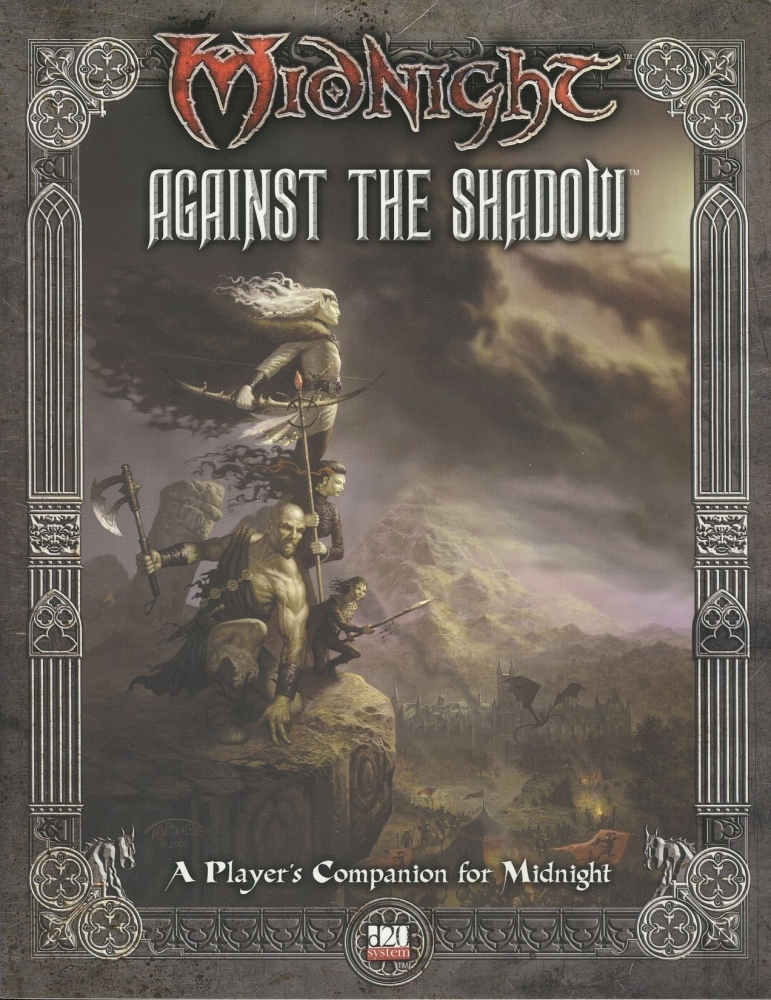 AGAINST THE SHADOW é o companheiro do jogador e recurso de DM para o cenário de campanha sombrio e épico MIDNIGHT. Lutadores desesperados contra as sombras encontrarão novos caminhos heróicos, classes de prestígio, talentos, feitiços e armas para ajudá-los a sobreviver. As novas regras de fitoterapia criam uma opção de apoio ao partido não-mágico especificamente adaptada para a campanha MIDNIGHT. Finalmente, até mesmo os Mestres encontrarão material valioso em novos nexos de poder e itens de pacto.