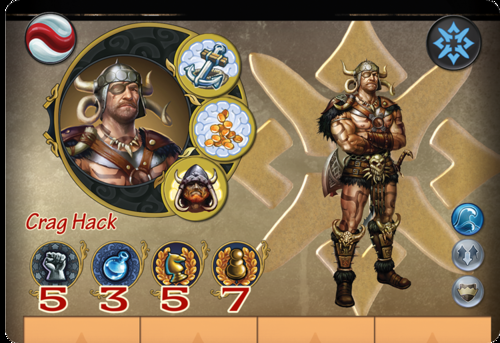 Crag Hack é um herói neutro - ele não pertence a nenhuma facção e pode ser contratado por qualquer jogador.