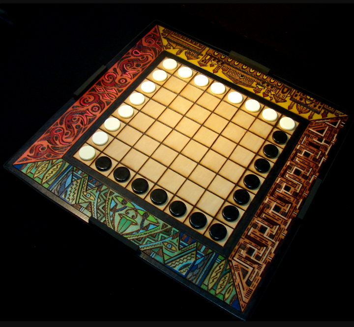 Tabuleiro tradicional de Ming Mang. Criado pelo artista e designer de jogos Paulo Netto do Arte em Fogo.