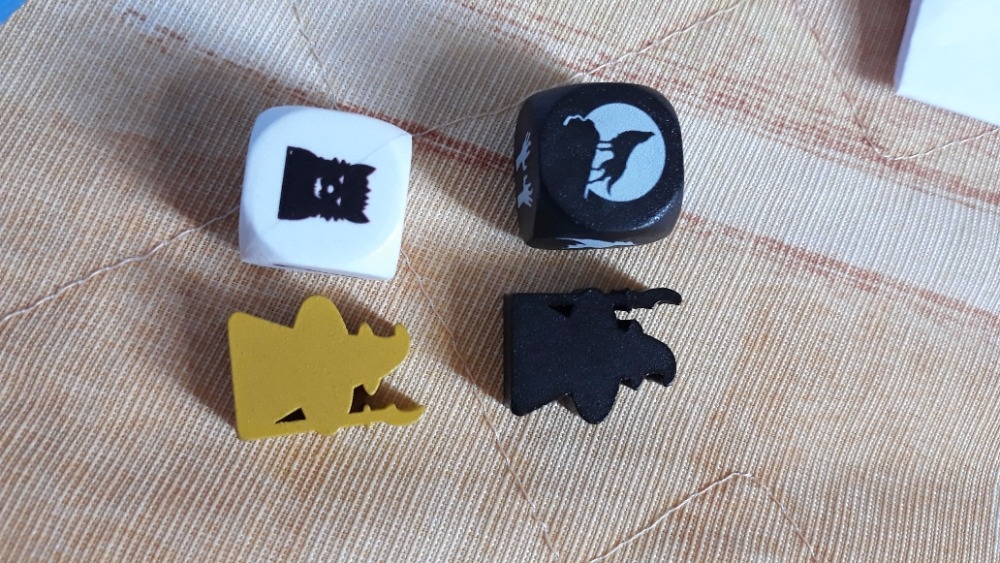 Na realidade, os meeples são de madeira, e os dados de plástico. -.-