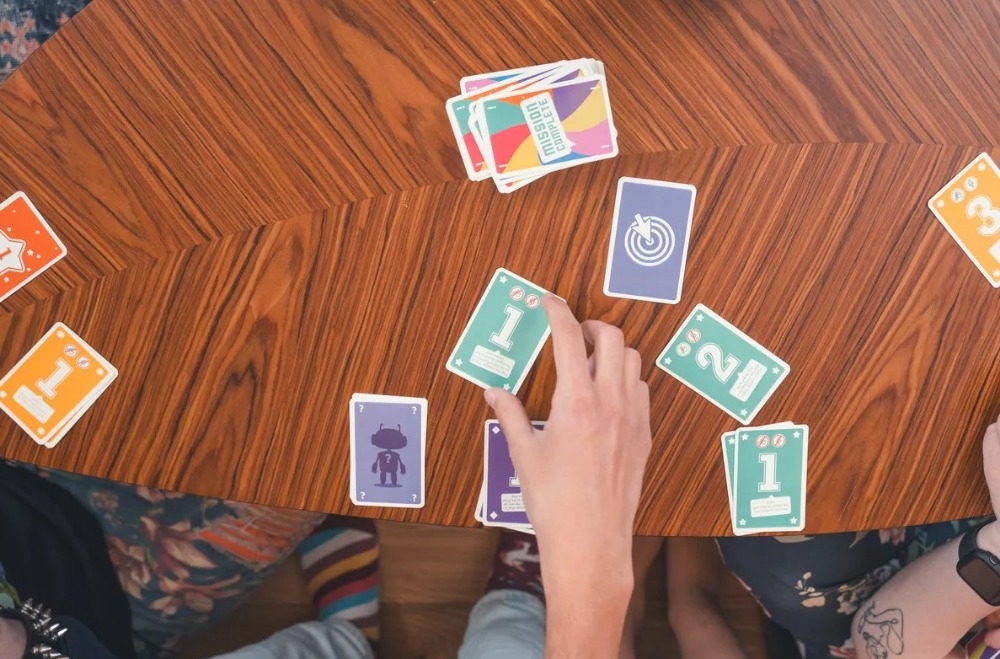 Mission Complete é um jogo de cartas cooperativo único com regras de comunicação em constante mudança. Jogue as cartas certas no momento certo e use cada oportunidade para comunicar sua missão comum para vencer o jogo.
