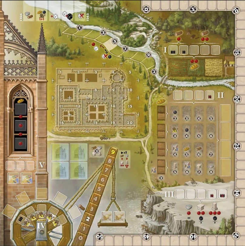 O jogo é disputado em cinco rodadas. Uma vez que todos os dados tenham sido colocados, os jogadores realizarão as ações na ordem das áreas de ação, de I a V. Depois disso, cada jogador terá a oportunidade de ajudar a construir o mosteiro. Durante o jogo, Pontos de Vitória (PVs) podem ser obtidos com as peças do Rei, da vila e ajudando na construção do mosteiro. No final do jogo, PVs são ganhos por conjuntos de diferentes peças de pedra e vitrais não utilizados, bem como por sua posição na trilha de trabalho. O vencedor é o jogador com mais PVs.