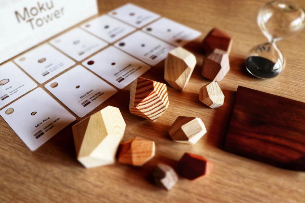 Moku Tower não é apenas um ótimo jogo de festa, é também uma decoração de casa incrível que pode impressionar seus amigos. Quando não estiver jogando, você pode simplesmente exibir a Moku Tower como uma obra de arte. Cada jogo contém 10 peças diferentes de pedras de madeira (incluindo grandes e pequenas) e são feitas de 8 tipos diferentes de materiais de madeira natural (freixo, pinho, sapele, bordo, nogueira, bétula, cânfora e pau-rosa). Cada um deles tem grão, cor, peso, textura e até aroma diferentes. Além disso, cada pedaço de madeira é primorosamente feito à mão por nosso mestre em madeira. Portanto, cada um deles tem seu próprio corte e ângulo exclusivos, tornando a Torre Moku uma de suas decorações de casa mais requintadas e exclusivas.