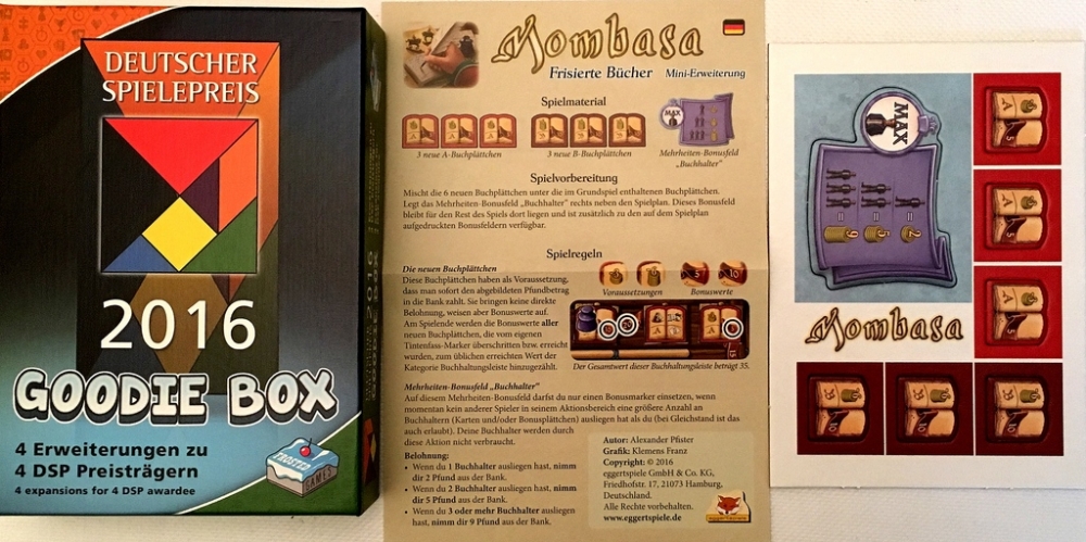 Promo para o jogo Mombasa contido no Deutscher Spielepreis 2016 Goodie Box.