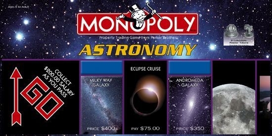 Outra variante do monopólio. Serviços públicos são substituídos por observatórios, ferrovias por fabricantes de telescópios e propriedades por corpos celestes. As peças de estanho são: radiotelescópio, telescópio em cúpula, Telescópio Espacial Hubble, telescópio Schmidt-Cassegrain, binóculos e cadeira de jardim.