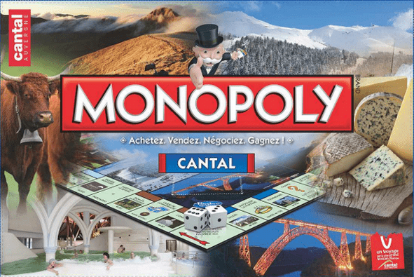 O clássico Monopólio com construções e outros elementos da região do Cantal, na França.