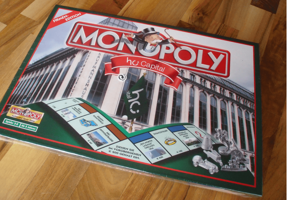 O clássico Monopoly com construções e outros elementos da empresa hci Capital.