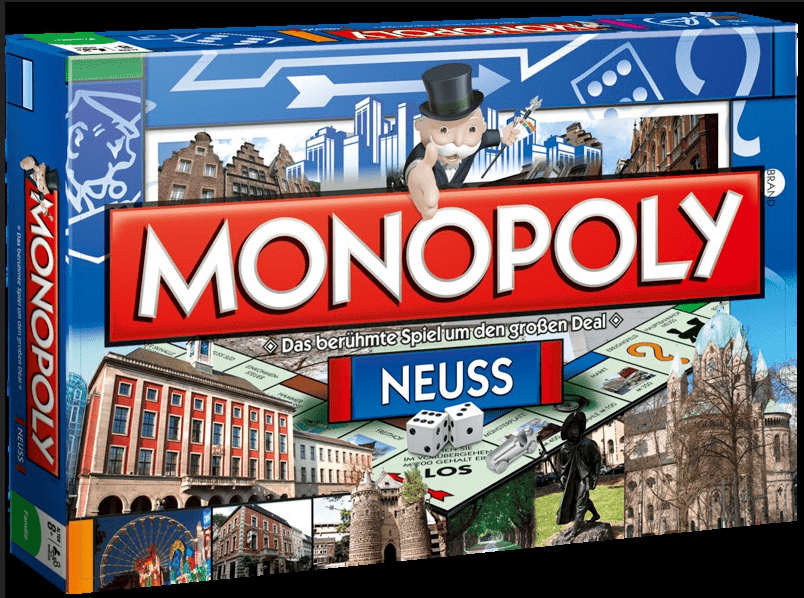 Monopólio definido para Neuss, Alemanha. Todos os elementos tradicionais de rolar, mover, comprar, ganhar e gastar.
