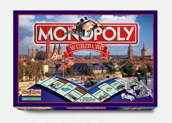 O clássico Monopoly com construções e outros elementos de Würzburg, na Alemanha.