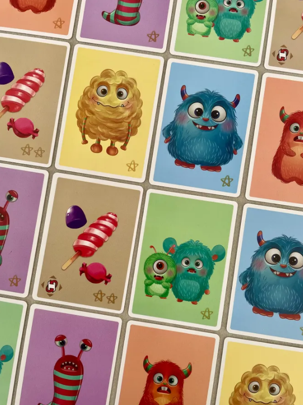 Monster Hide and Seek é um jogo de memória que usa cartas de monstros de dupla face para confundir sua lembrança. Na sua vez, vire duas cartas de monstro. Se os lados virados coincidirem, você ganha as cartas. Se não coincidirem, simplesmente coloque-as de volta SEM virá-las de novo. Você se lembra do que está no outro lado dessas duas cartas? Não deixe sua memória falhar!