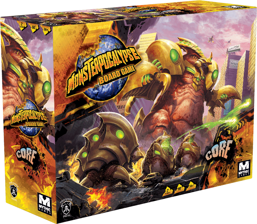 A nova gama Monsterpocalypse big box será 100% compatível com os produtos de jogos de miniaturas de hobby Monsterpocalypse existentes e joga exatamente o mesmo, mas não requer montagem. Esta é uma versão de jogo de tabuleiro do clássico jogo de escaramuça e visa dar a mesma sensação do jogo original, tornando-o mais acessível e “escolher e jogar”. escolha sua agenda, entre os protetores e os destruidores, conduza suas unidades para a cidade e caça seu oponente, enquanto destrói tudo em seu caminho!