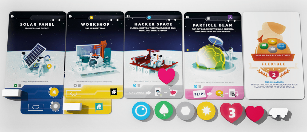 As fichas de madeira do rover lunar são um recurso neutro que adiciona um elemento de colocação de trabalhadores ao jogo. Eles também são usados ​​para quebrar laços e por isso devem ser usados ​​com cuidado.