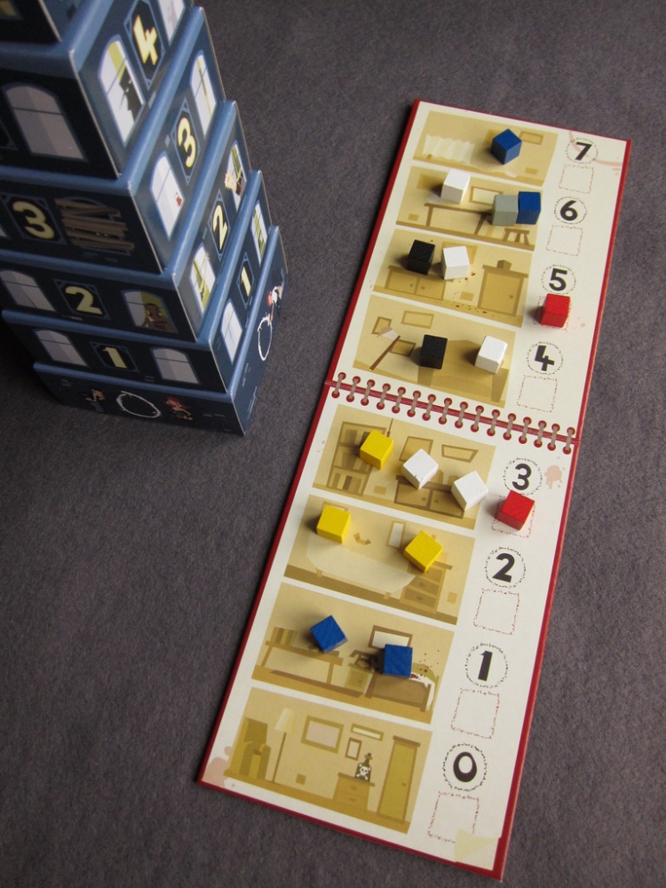 Os jogadores levantam suspeitas: eles jogam suas pistas (na forma de pequenos cubos de madeira) no eixo da torre do hotel. Se você apurar seus ouvidos, você será capaz de adivinhar em que andares as pistas suspeitas vão caindo. Com esse conhecimento, você pode denunciar outros jogadores e cobrir seus próprios rastros.