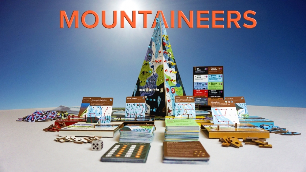 Mountaineers é um jogo de tabuleiro estratégico no qual 1-6 jogadores competem uns contra os outros e alpinistas de IA para ganhar pontos de escalada (pontos de vitória) enquanto manobram em torno de um tabuleiro de jogo modular 3D giratório de 45 cm de altura. O tema dos Mountaineers é leve e divertido, principalmente focado na busca competitiva de rotas, gerenciamento de recursos, construção de personagens e atualizações, enquanto desafia os jogadores a reagir a vários eventos excitantes (e às vezes cômicos) que ocorrem na montanha.
