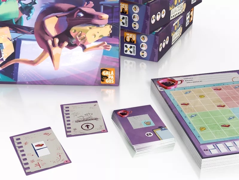 É um jogo de flip and write em que os jogadores desenham as paredes do labirinto, mas é o adversário que traça o caminho a ser percorrido pelo rato (e claro, ele vai fazer o pior caminho possível). Em cada turno, uma carta é virada para determinar qual o tipo de parede que os jogadores poderão desenhar, algumas delas incluindo mais queijo, doces ou novas ratoeiras.