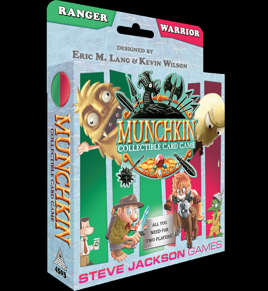 Eric Lang e Kevin Wilson entregam um design completamente novo no universo de Munchkin: um jogo de cartas colecionável independente e para dois jogadores que mantém um jogo de nível competitivo, mas ainda mantém o humor pateta pela qual Munchkin é famoso.