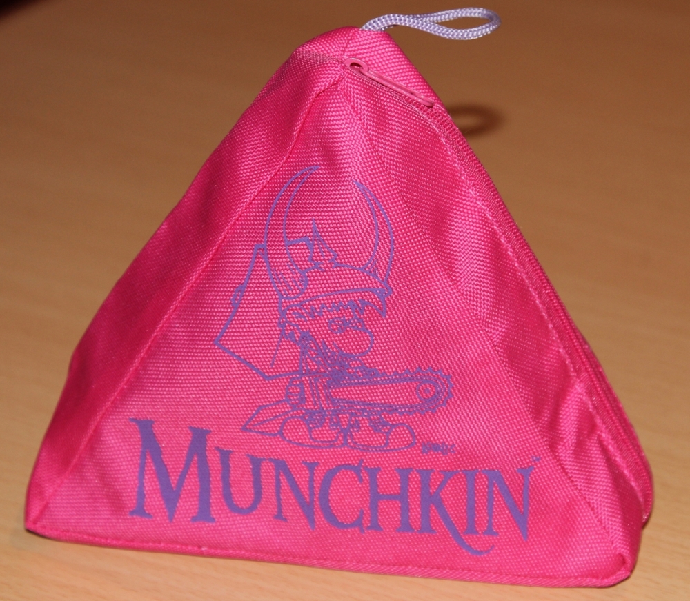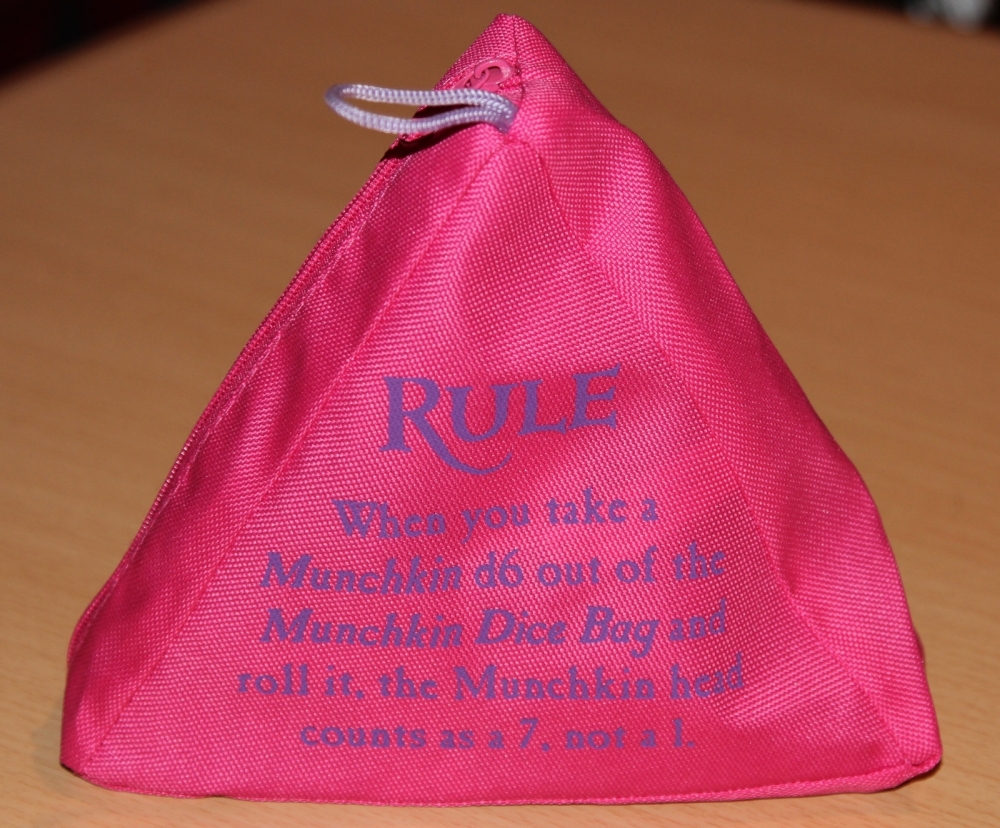 O Munchkin Dice Bag é uma bolsa de nylon/vinil/plástico de dados. É triangular (cerca de 6,5 cm de lado) e possui cerca de 2,5 centímetros de espessura. No meio do lado direito há um longo zíper para abrir a bolsa. Ela vem em dois estilos, bronze com texto marrom e rosa com texto roxo.
