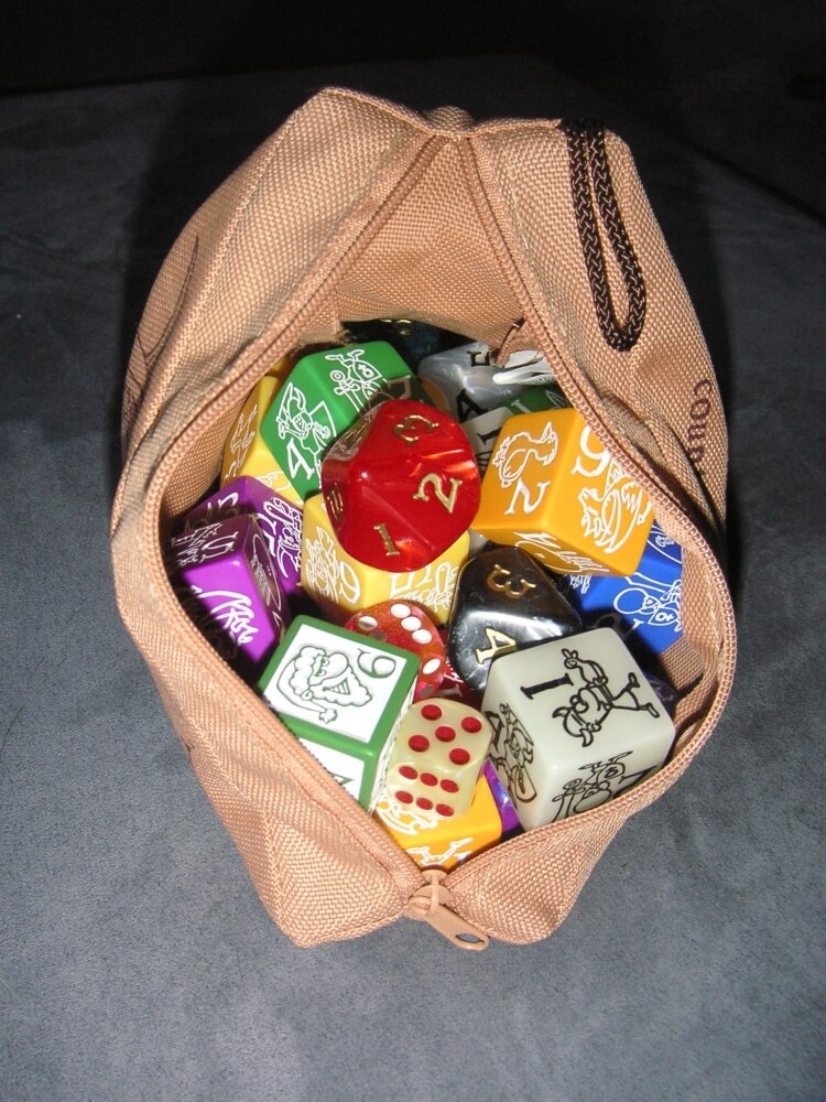 A bolsa possui uma regra especial para uso em jogos Munchkin: "Quando você pega um d6 Munchkin da Bolsa e o rola, a cabeça Man Munchkin vale um 7, e não um 1." Isso está se referindo aos d6s Munchkin especiais que vêm com conjuntos básicos de Munchkin, e que têm uma cabeça Man Munchkin no lugar da única face para o "1". (Esses dados também podem ser adquiridos separadamente.) Então, enquanto você pode usar a Bolsa para armazenar um grande número de dados, a regra especial só se aplica aos d6s com a cabeça Munchkin.
