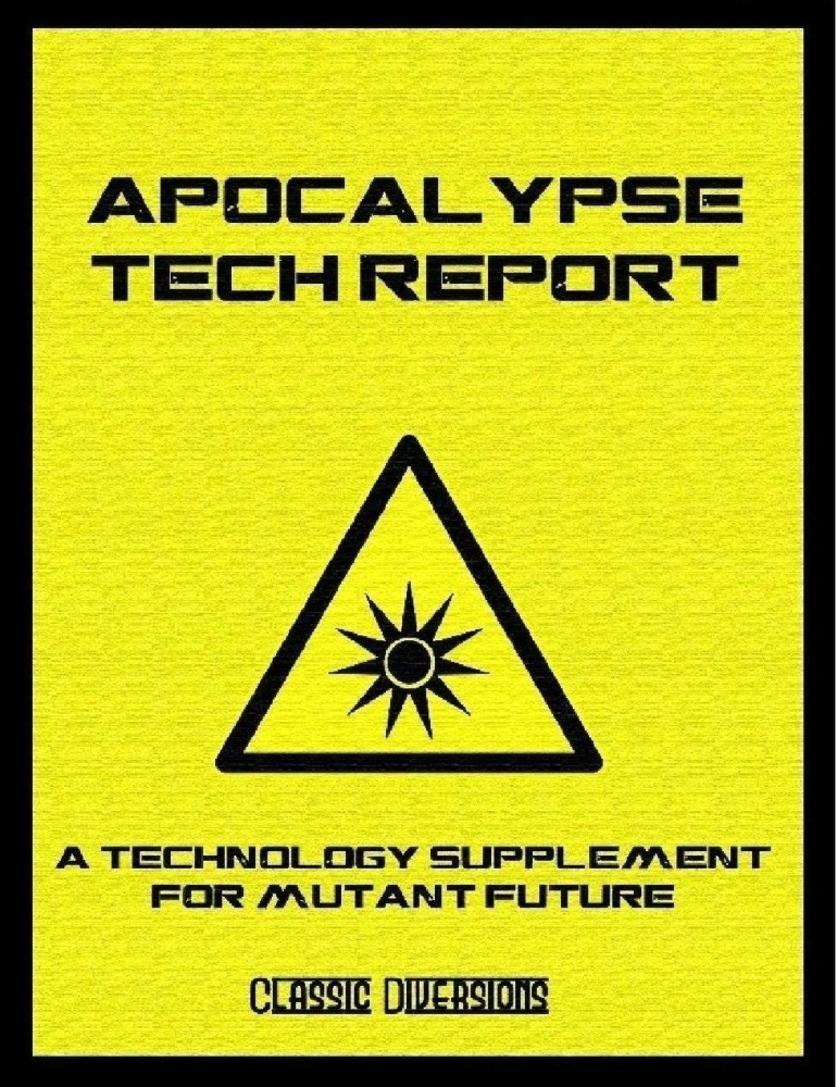 O Apocalypse Tech Report fornece equipamentos adicionais e novas formas de tecnologia - incluindo cibernética e nanotecnologia - para os muitos mundos do Futuro Mutante. Incluídos neste suplemento estão 60 artefatos tecnológicos da era pré-apocalipse – incluindo ferramentas, armas, dispositivos e armaduras – junto com 10 novos robôs.