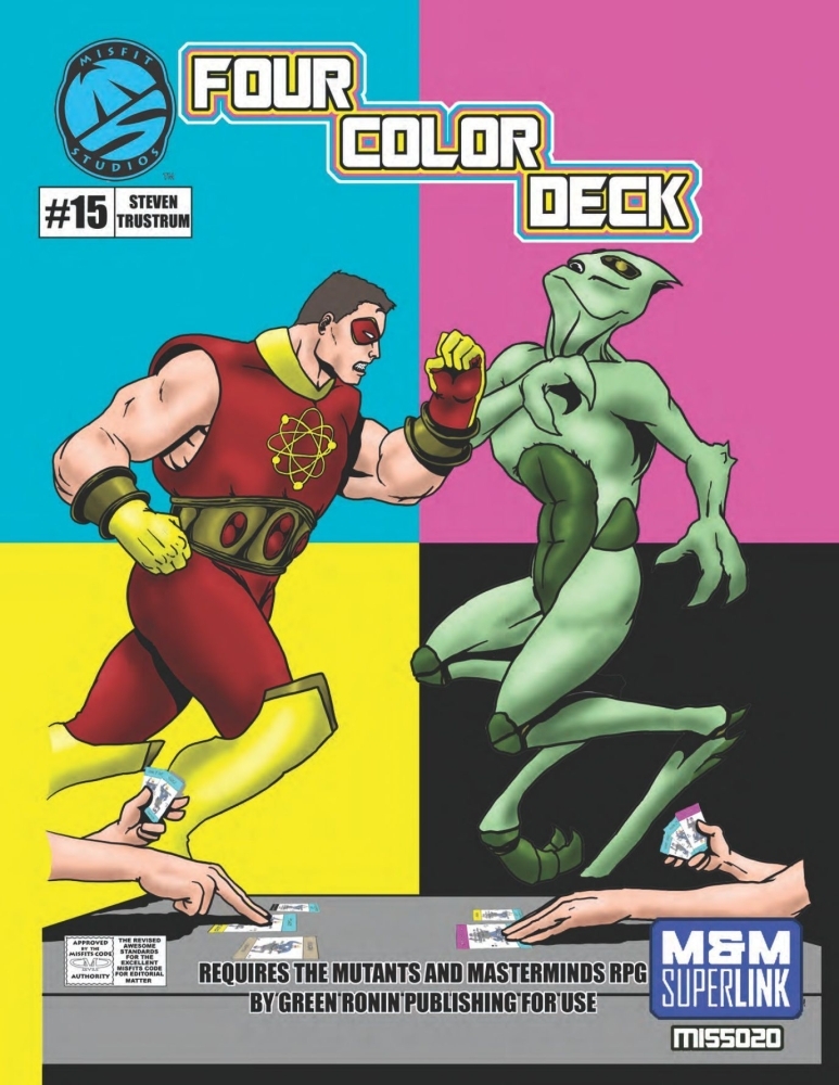 As histórias em quadrinhos de super-heróis estão repletas de inesperado e inexplicável, trágico e glorioso, e o mesmo deve acontecer com sua sessão de jogo de super-herói M&M Superlink. O Four Color Deck cumpre esse papel ao introduzir um novo elemento de jogo que requer estratégia e tática, ao mesmo tempo que mantém o toque de aleatoriedade e destino.