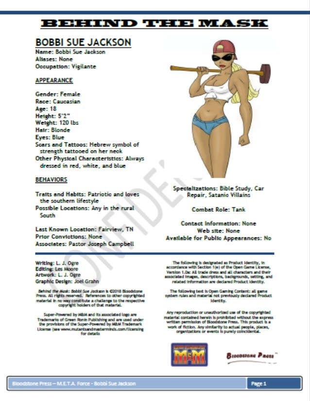 2. Mutants & Masterminds Third Edition - Behind the Mask: Bobbi Sue Jackson