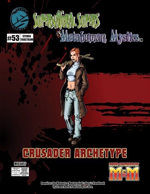 Este lançamento para Supernatural Supers & Metahuman Mystics fornece a você um novo arquétipo, o Crusader. Um cruzado é um mortal relativamente normal que tem a capacidade de perceber o mundo sobrenatural ao nosso redor e, posteriormente, foi arrastado para a guerra em andamento entre os Poderes da Luz e das Trevas. O cruzado está mal equipado para tal luta, no entanto, e cobra seu preço. Eles são heróis imperfeitos que lutam, no entanto.