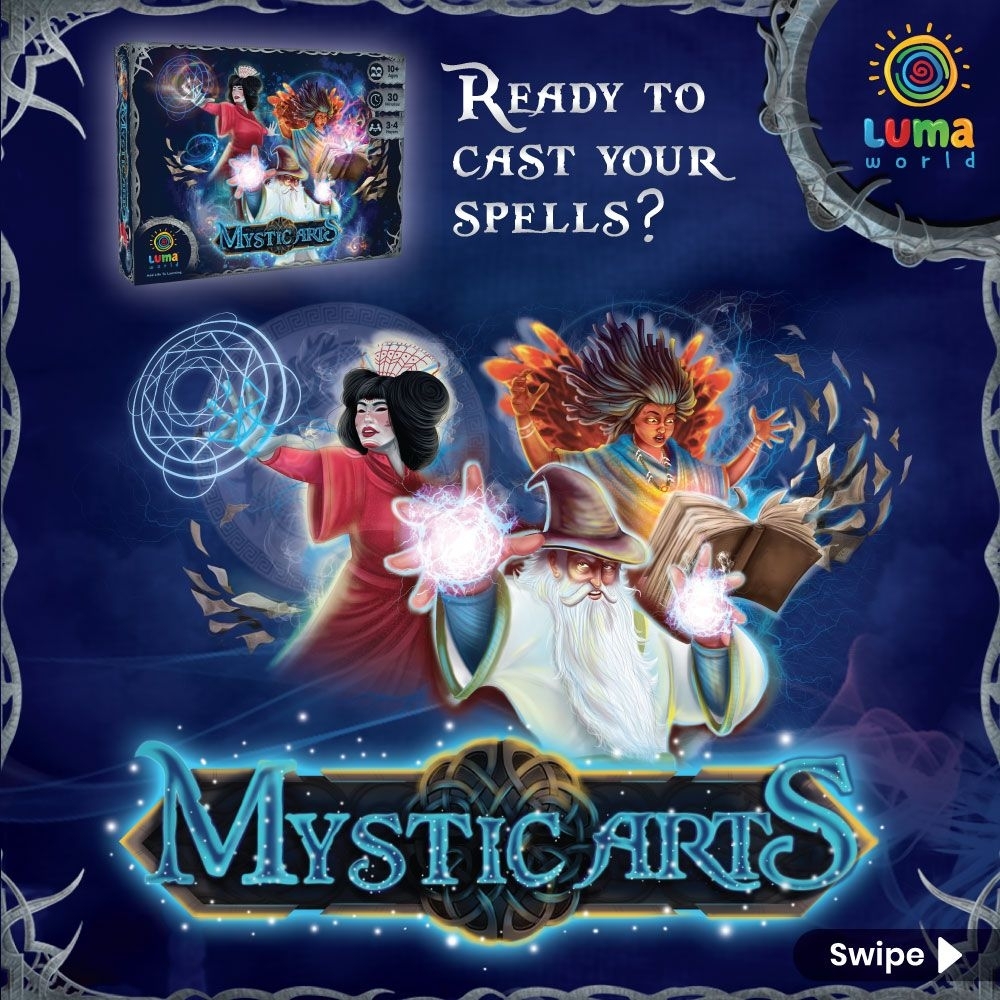 Em Mystic Arts, os jogadores duelam para conquistar poderosas poções dos grandes magos e bruxas. O objetivo é ser o primeiro a conquistar duas boas poções.