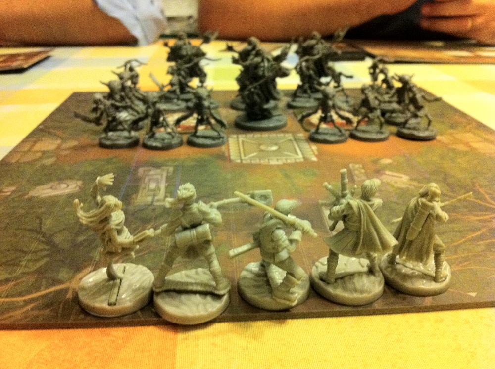 Começamos com tile simples com dois Lairs e 4 capitães (objetivo do jogo era matar 6 captains e 1 mini-boss). Escolhemos trazer pra mesas os undeads e seus capitães.