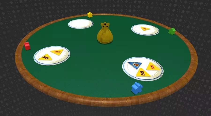 - Se você optar por parar, coloque todas as fichas que você comprou na sua frente. Em seguida, pegue qualquer ficha na frente de outros jogadores que tenham o mesmo número! Quaisquer fichas que permaneçam à sua frente no início do seu próximo turno são colocadas no seu prato e estão a salvo de serem roubadas.