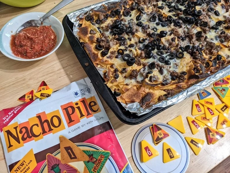 Do criador de Happy Salmon e outros jogos de festa de sucesso, Nacho Pile é um jogo rápido e de alta energia que terá fichas voando para frente e para trás enquanto os jogadores competem por pratos e estômagos cheios. No jogo, os jogadores devem usar a sorte para empilhar seus pratos machos, mas também roubar fichas correspondentes de outros jogadores. Não se arrisque muito ou você perderá todos eles! Fique de olho nos chips especiais que realmente aumentam o calor com efeitos picantes.