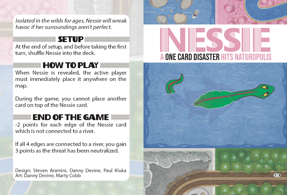 Nessie representa um monstro com a intenção de destruir sua bela paisagem, a menos que você conecte rios suficientes para neutralizar a ameaça.