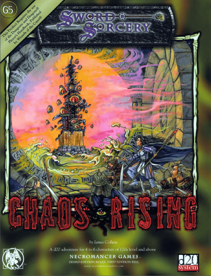 Chaos Rising é uma aventura clássica de exploração de masmorras de Jim Collura, projetada para 4 ou mais personagens de pelo menos 12º nível. Ele detalha uma cidadela anã antiga e abandonada onde o amuleto do demônio está escondido e oferece encontros únicos que permitem aos jogadores viajar de volta no tempo para moldar o próprio futuro! Chaos Rising suporta monstros encontrados no Tomo dos Horrores."