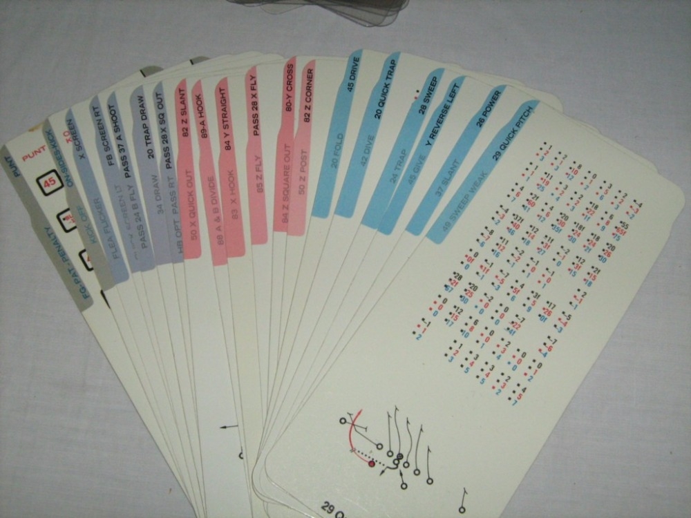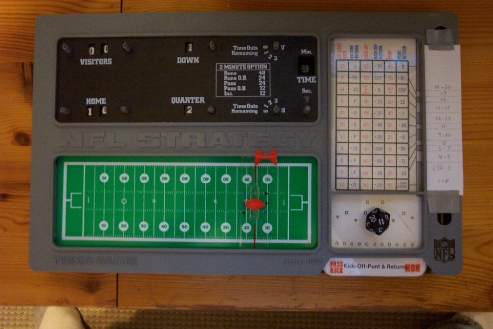 NFL Strategy é um jogo de futebol americano baseado em jogadas e a capacidade de executá-las em vez de estatísticas da equipe. O número de peças ofensivas e peças defensivas varia de acordo com cada edição e um cartão de equipes especiais está incluído. Cada jogador escolhe secretamente sua jogada. A carta de jogada defensiva (que tem "janelas" em seu corpo) é jogada em cima do jogo ofensivo para revelar cinco possíveis resultados. Para encontrar o resultado, você rola dois dados de seis lados. A rolagem de dados determina qual "janela" que os jogadores observam e este é o resultado da jogada. O resultado também leva em conta se a bola está na marca de hash esquerdo, a marca de hash direito ou no centro do campo.