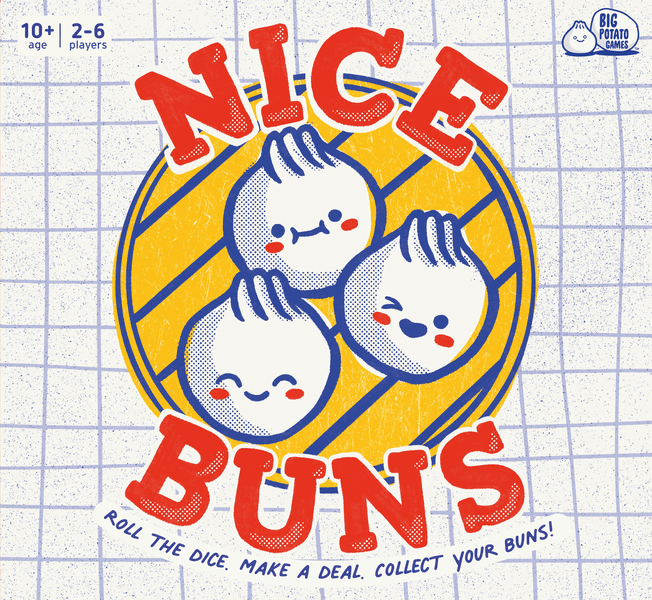 Nice Buns é um jogo de estratégia leve no qual os jogadores se sentam juntos no "Buffet de Nice Buns" e correm para encher seu prato com três conjuntos de pães de bao coloridos. A cada rodada, você lança três dados que permitem coletar, roubar e trocar pães diferentes.