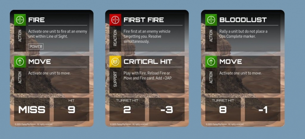 Em cada turno, os jogadores compram uma mão de quatro cartas e pode jogar uma carta, às vezes mais, em cada impulso. As cartas ativam unidades para mover, atirar e usar os poderes especiais, como rodadas de explosivos, telecinese, e muito mais. Cartas especiais, tais como sucessos críticos ou tempestade de balas, também pode aumentar os ataques de uma unidade.