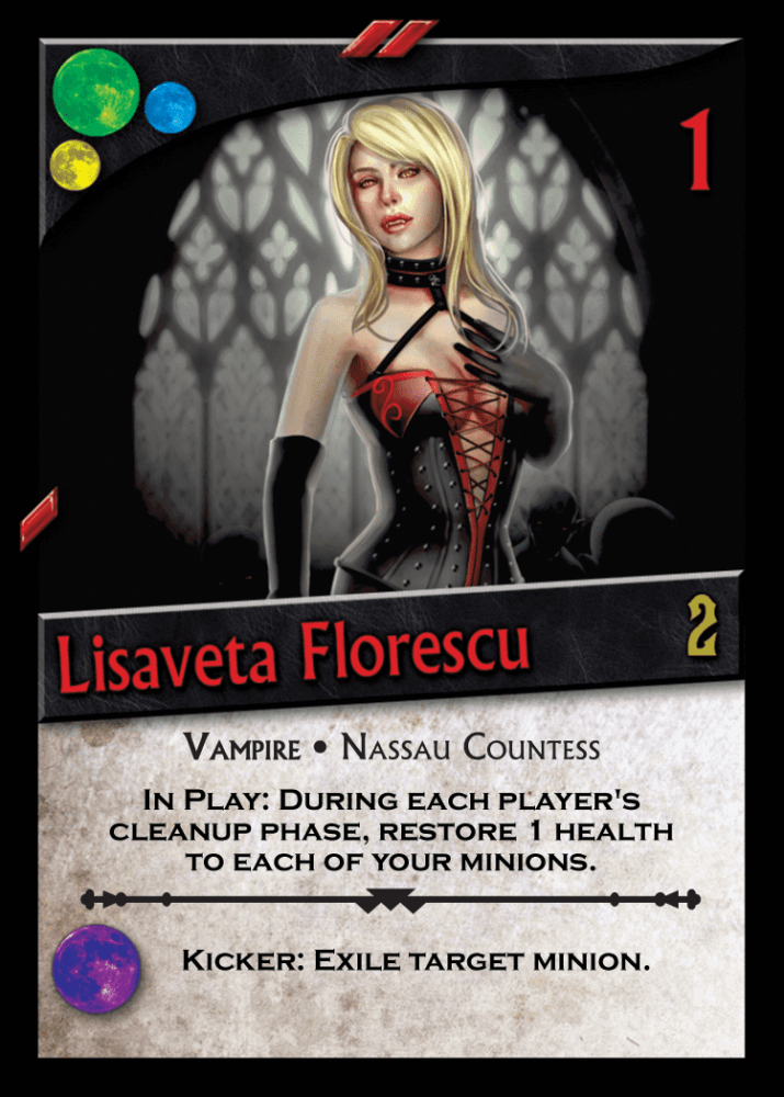 Lisaveta Florescu não apenas traz novas combinações de encadeamento de cores para Nightfall; ele apresenta um lacaio com a habilidade de curar seus outros lacaios. Com um curador tão poderoso em suas fileiras, até mesmo um jogador com Furious Melee terá dificuldades para superá-lo!