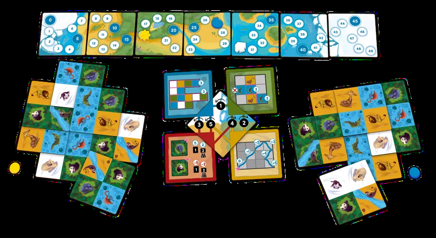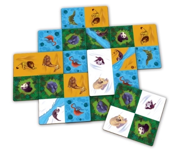 A cada rodada, você terá que comprar 3 cartas, colocar uma e passar as outras (fase de draft simples). Cada carta é composta por 4 biomas, cada um deles contendo um animal. Ao colocar uma carta, você deve cobrir PELO MENOS um bioma. Assim, todo o Santuário deve caber em um 6 por 6.