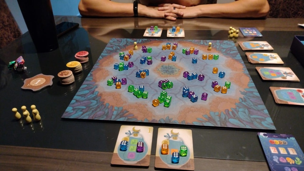 Graças a um tabuleiro de jogo de dupla face, Noctiluca também inclui um modo solo no qual um jogador deve resgatar a noctiluca da tempestade.