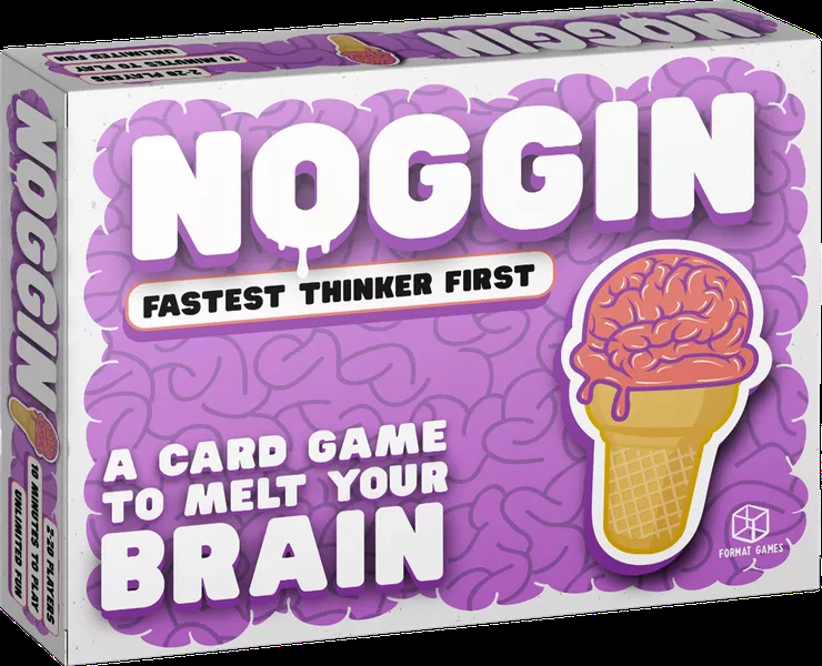 No Noggin, os jogadores se revezam distribuindo suas cartas - uma combinação de cartas de letras e cartas de ação - igualmente em três pilhas. Quando uma carta de ação aparece, as outras duas pilhas terão cartas de letras no topo, e a carta de ação informa como usar as duas letras visíveis para criar uma resposta, de preferência o mais rápido possível!
