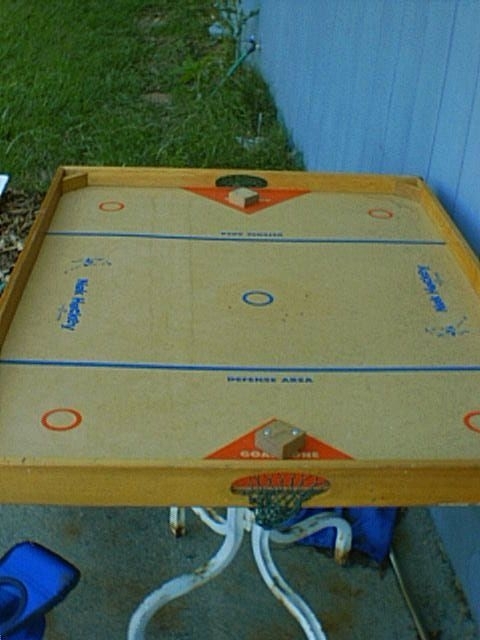 Jogo de ação jogado em uma mesa especial onde você acerta um disco através de um gol usando pequenos tacos de hóquei.