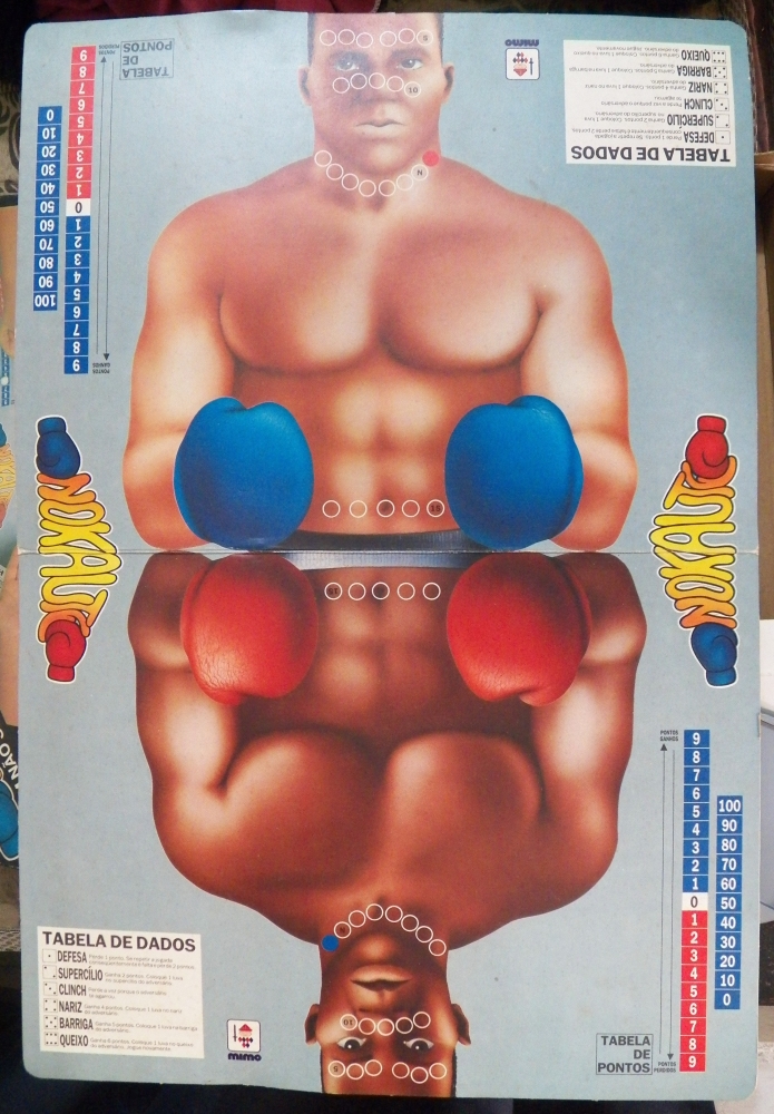 Nokaute é um jogo de dados com um tabuleiro simulando o corpo dos dois lutadores. Cada jogador escolhe um lutador e decidem quem começará primeiro. Em seguida se alternam rolando um dado de seis lados e vendo em qual parte do corpo do adversário ele atingiu e colocando uma luvinha para marcar o golpe. Um resultado de 2 é para supercílio, 4 para nariz, 5 para abdômen e 6 para queixo.
