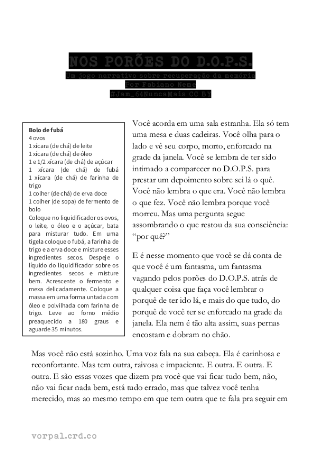 Você acorda em uma sala estranha. Ela só tem uma mesa e duas cadeiras. Você olha para o lado e vê seu corpo, morto, enforcado na grade da janela. Você se lembra de ter sido intimado a comparecer no D.O.P.S. para prestar um depoimento sobre sei lá o quê. Você não lembra o que era. Você não lembra o que fez. Você não lembra porque você morreu. Mas uma pergunta segue assombrando o que restou da sua consciência: “por quê?”