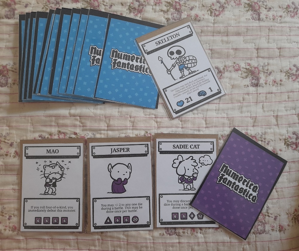 Compre a sua carta de herói (ou escolha um) e três de monstros. Cada herói tem uma habilidade especial e um conjunto de dados à disposição. O valor de coração (vida) dos monstros é o valor alvo que você deverá atingir para derrotá-los.