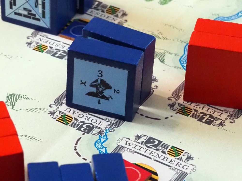 Essas batalhas são travadas usando bastões de madeira no The Battle Game, um jogo rápido e sem sorte, parecido com xadrez, de implantações astutas, reservas estratégicas e a famosa ordem oblíqua de Frederick. Suas capacidades neste Battle Game são determinadas pelos blocos que você trouxe para a batalha. As perdas podem ser bem pesadas e uma dessas batalhas pode alterar drasticamente o curso da campanha. Você precisará escolher suas batalhas com cuidado e tentar evitar lutar quando as probabilidades estiverem contra você.