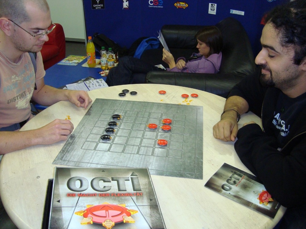 Octi é um jogo de estratégia abstrato único. Seu objetivo é mover suas peças para os pontos de partida do seu oponente. Octi permite múltiplos saltos, capturas e movimentos especiais de peças. A cada jogada, os jogadores decidem se vão adicionar novas peças, melhorar as peças existentes ou mover uma peça. As opções neste jogo são impressionantes e cada jogada apresenta uma nova maneira de pensar sobre o jogo.