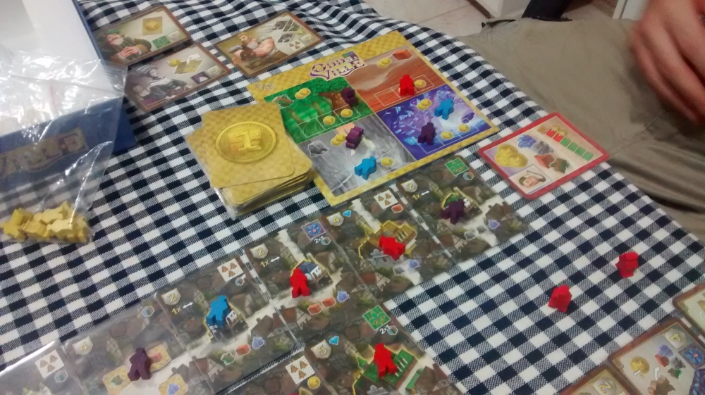 O que determina a ação do jogador é um conjunto de 4 cartas de trabalhador. Com elas você poderá conseguir dinheiro, mandar trabalhadores para a área de recursos ou comprar uma carta da cidade. Apenas para construir não será preciso usar essa carta de trabalhador. Elas possuem níveis diferentes de benefício / ação, então, saber usá-las é importante.