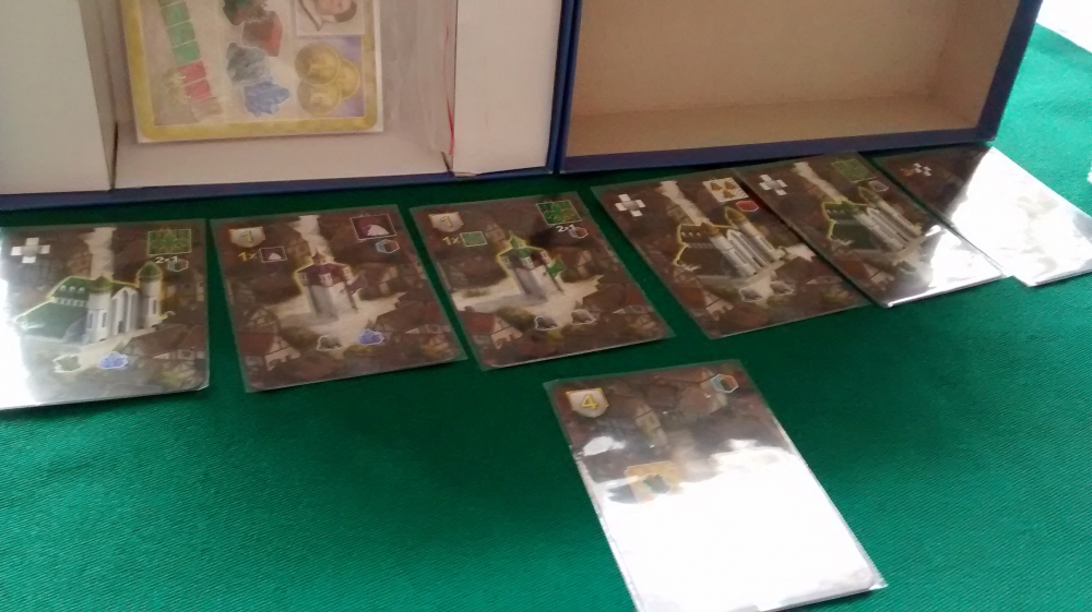 Cartas do jogo, caixa colocada na vertical para tampar um pouco da luz