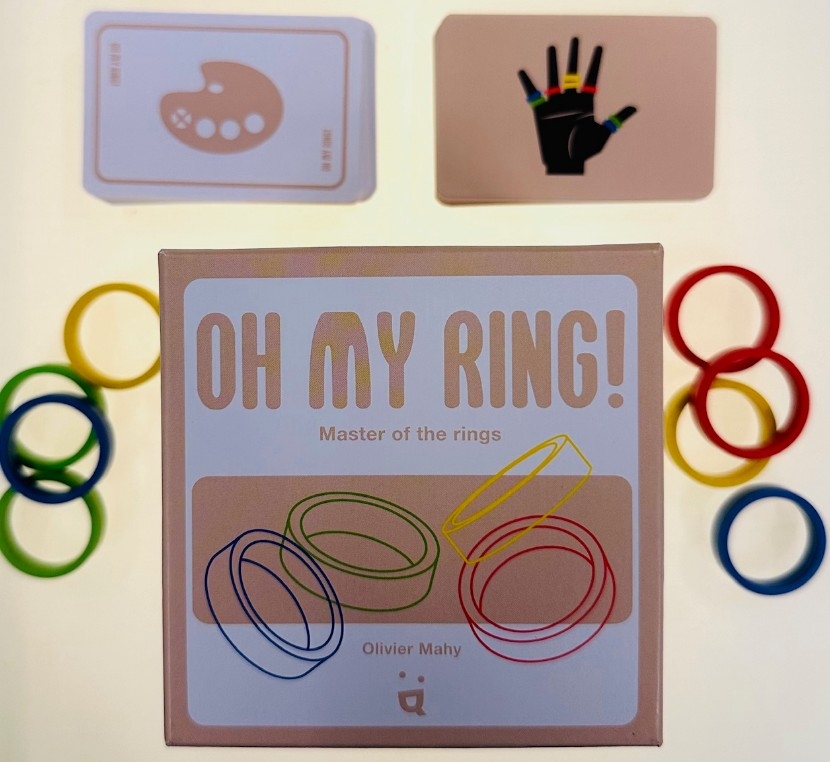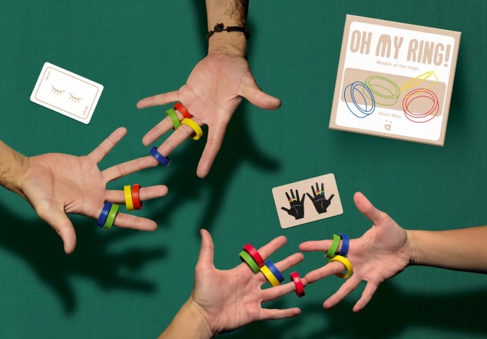 Em Oh My Ring!, você precisa ser rápido e ágil para deslizar seus anéis de um dedo para o outro enquanto tenta combinar as figuras das cartas.