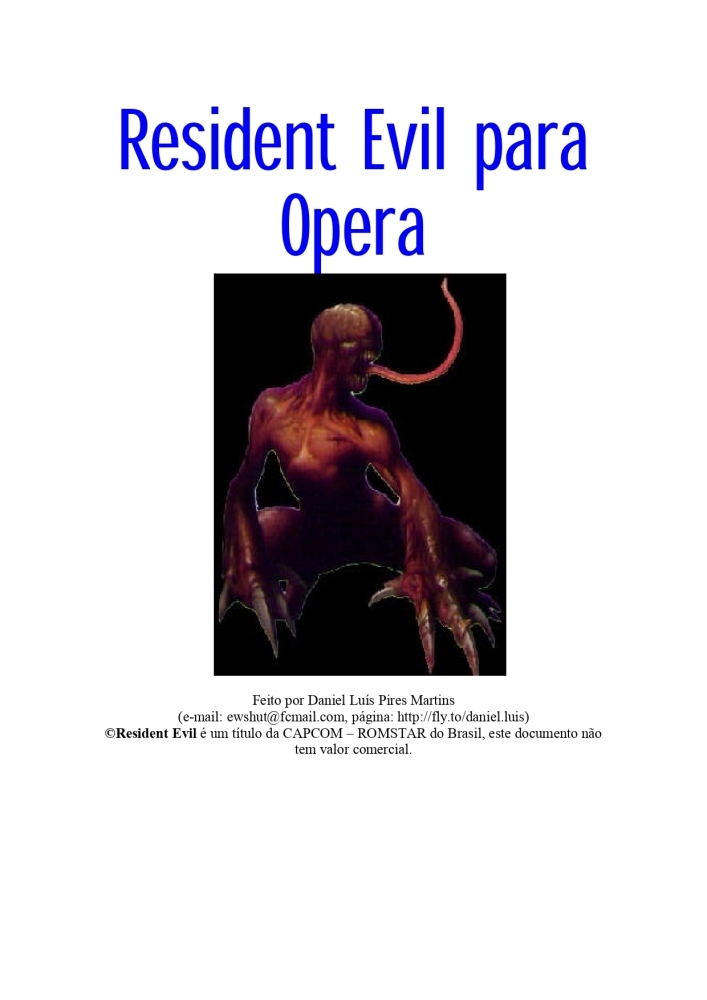 Opera RPG - Resident Evil Adaptação do jogo Resident Evil, com descrição de cenário, regras e personagens. LudoADM 93 0