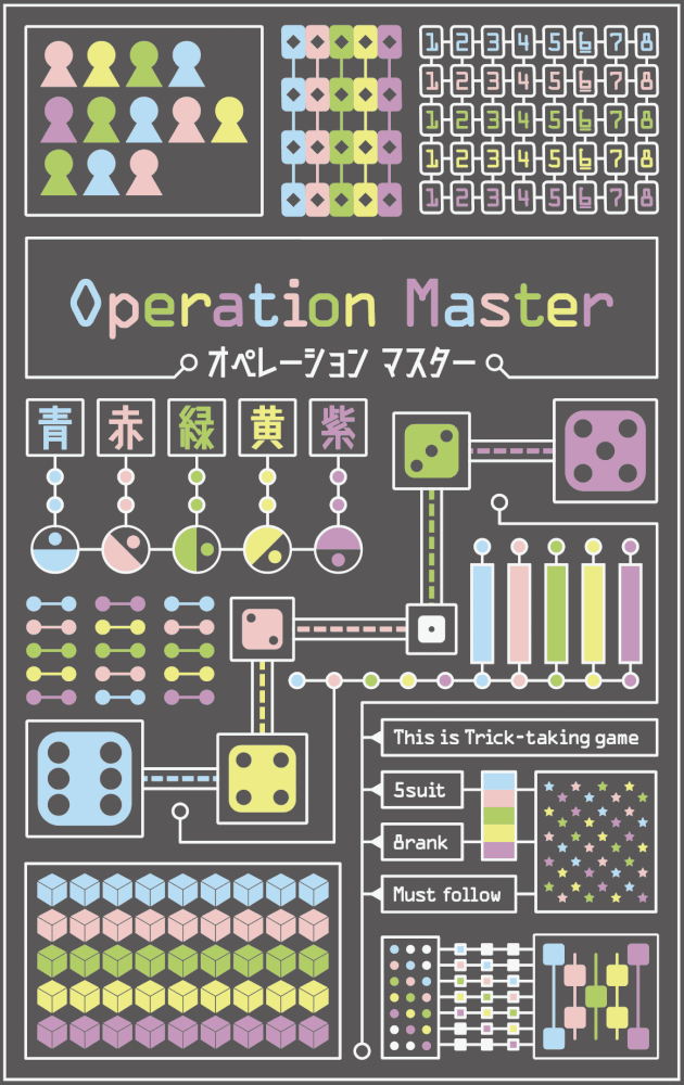 Operation Master é um jogo peculiarmente pitoresco com dados e cartas. Você recebe dados cada vez que ganha um truque. Os dados que você recebe contam como seus VPs (pontos de vitória). Esforce-se para ganhar cada truque com o senso certo de tempo, enquanto está atento a todos os dados na mesa. Isso é indispensável para a sua vitória.